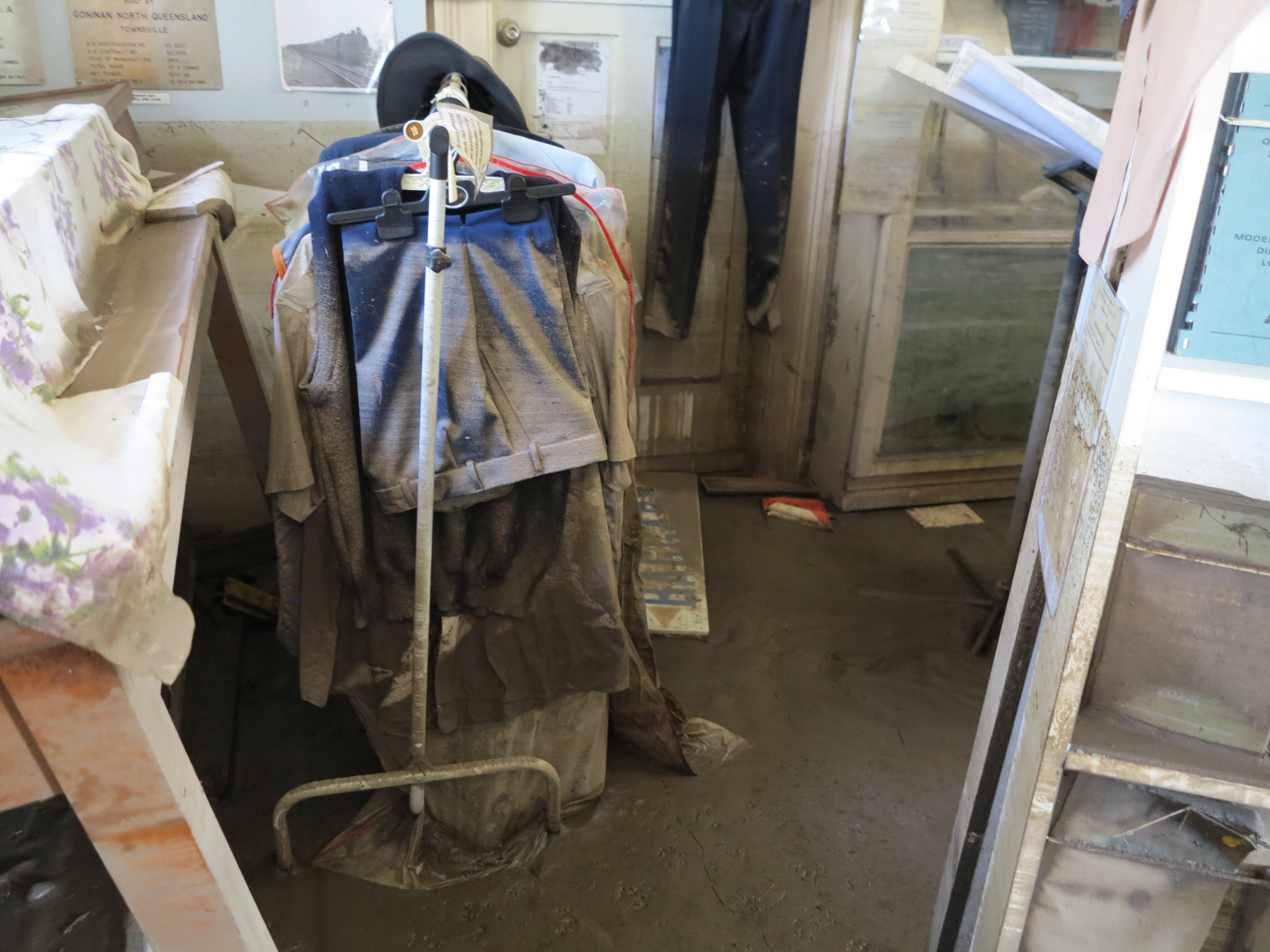 It is hard to believe the amount of silt that can be carried in the water and then deposited on surfaces. Every object that was below the flood line was covered in thick mud. Toolboxes were full of water, lanterns were half full of water, mannequinns dressed in uniforms simply floated around before being left in the mud.