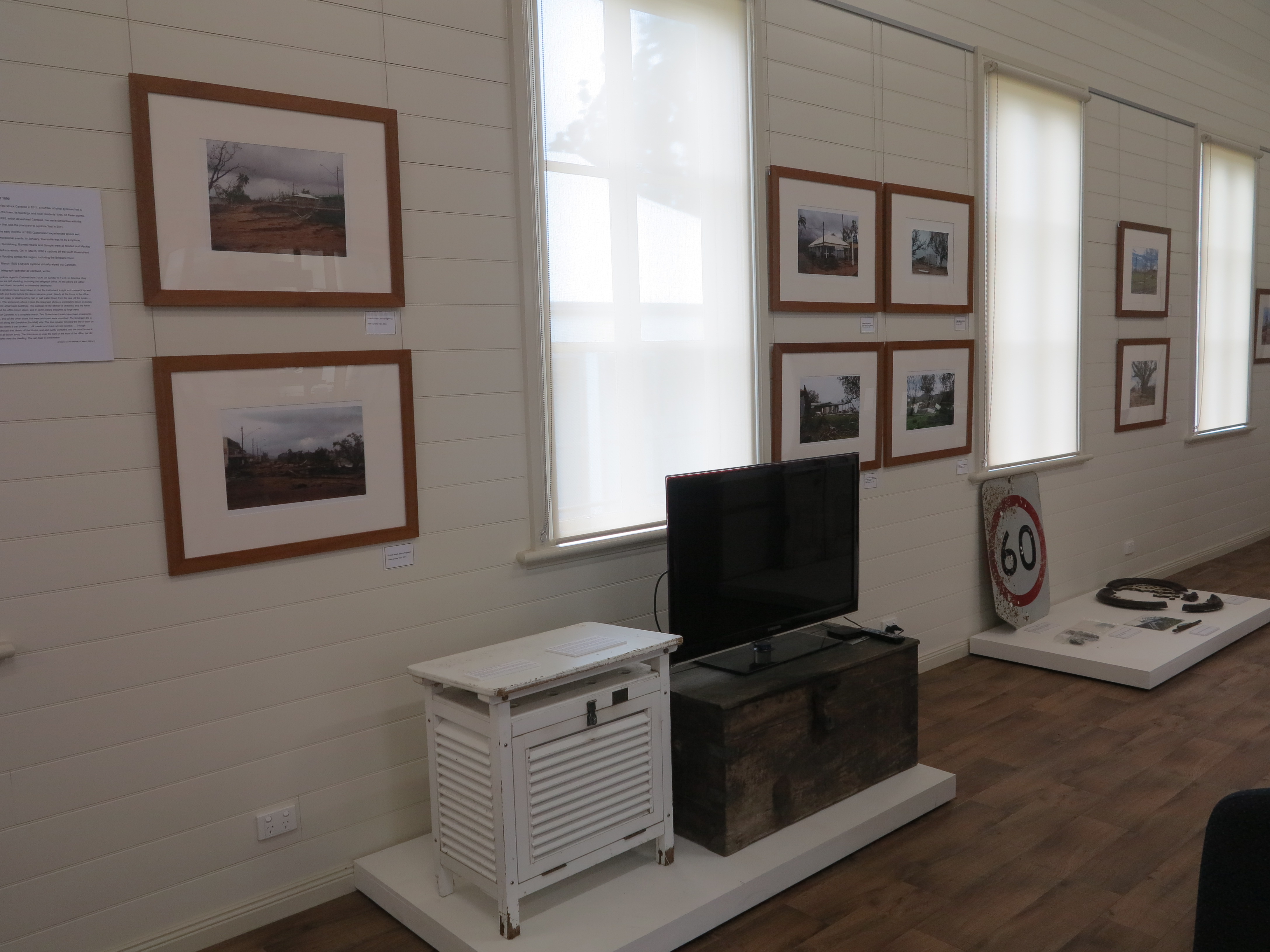 One of the major displays the MDOs worked on with the community, tells the story of Cyclone Yasi and the impact that it had on Cardwell. This is done through digital images, oral histories and objects. The ability for the historical society to collect and store objects associated with the cyclone has been limited. However, now that there is a new building it is expected that the collection will grow significantly. The historical society has a large collection of digital images that show the aftermath of the cyclone and more contemporary images as the town rebuilds. They have also actively engaged in recording oral histories and have run community workshops. These oral histories are available to listen to and view and are a powerful reminder of what the community went through and how they are recovering.