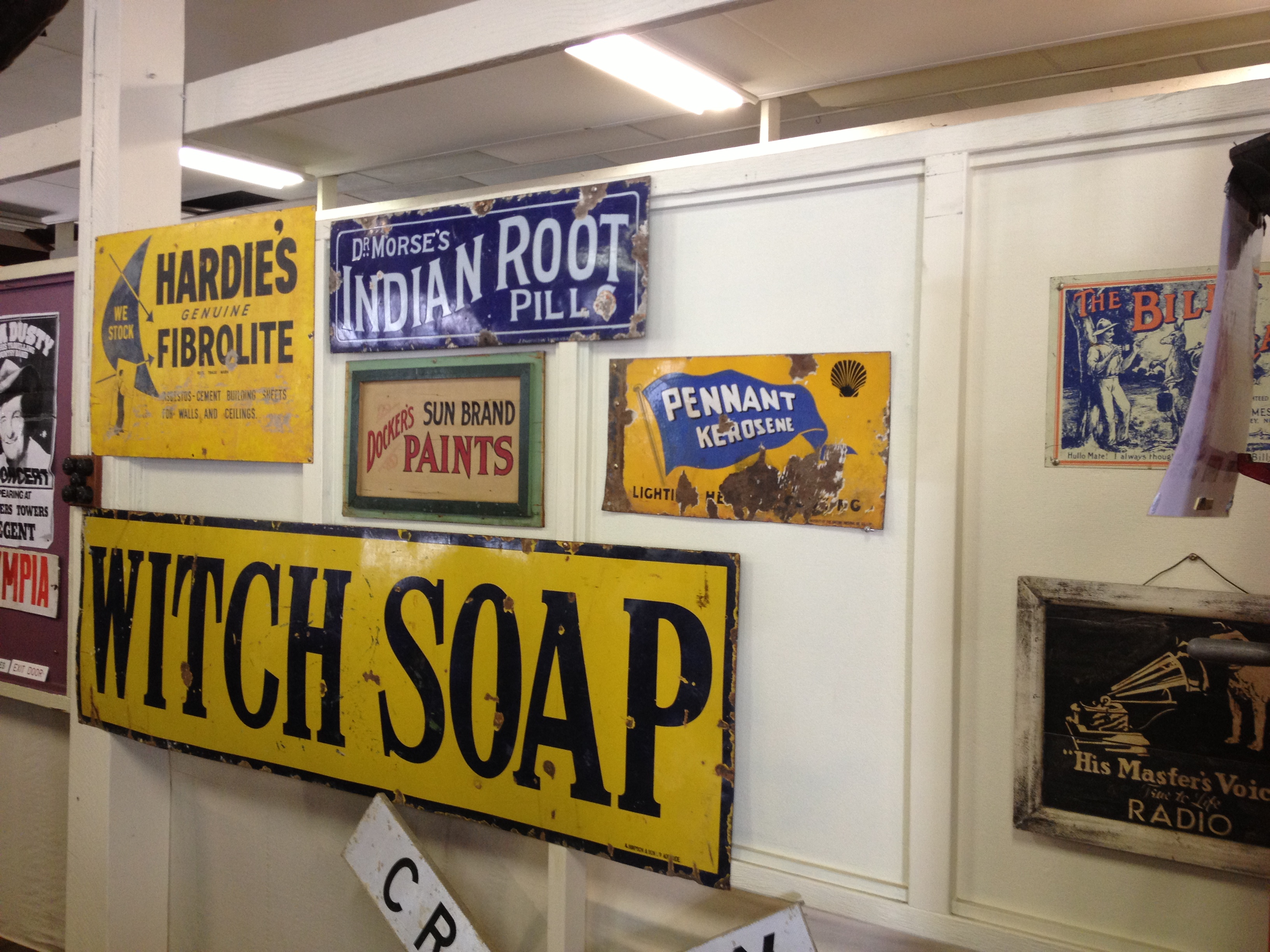 Other interesting objects include a Welsh bible, a shorthand bible, and part of the original Chinese Joss House in the T – translation section. The S – sign, section has an original Hardies Fibrolite metal sign advertising asbestos for walls and ceilings. The R- records section has original ledgers from the Burns Philp days and also mining records from Charters Towers gold rush days.