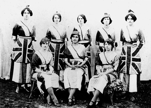 Female patriotic group wearing fancy dress at Cooktown ca. 1913 – Copy