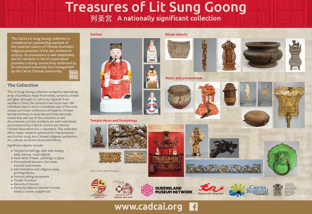 As many museum followers know, Cairns is home to a nationally significant collection of Chinese artefacts known as the Lit Sung Goong temple collection. Cared for by the Heritage Group at Cairns and District Chinese Association Inc. (CADCAI), this collection tells the story of early migration and settlement, of business connections and acumen, religious practices and artistic skill and craftsmanship.