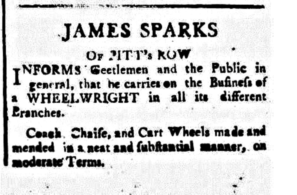 Sparks was not the only workshop in Sydney building wheels and carts. William Carf’s wheelwright shop in Bridge Street Sydney was alongside blacksmiths Thomas Randall and Richard Harding, who fabricated ‘ironwork for carts, wagons and other carriages.’(SG&NSWA 10 Feb 1805: page 1; 19 May: page 4) Horses were in short supply but bullocks were widely used. Many carpenters built rustic bullock drays and wagons, and just ordered the metalwork and wheels from the ‘smiths and the wheelwrights.