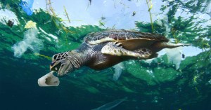 Sea turtle eating a styrofoam cup.
