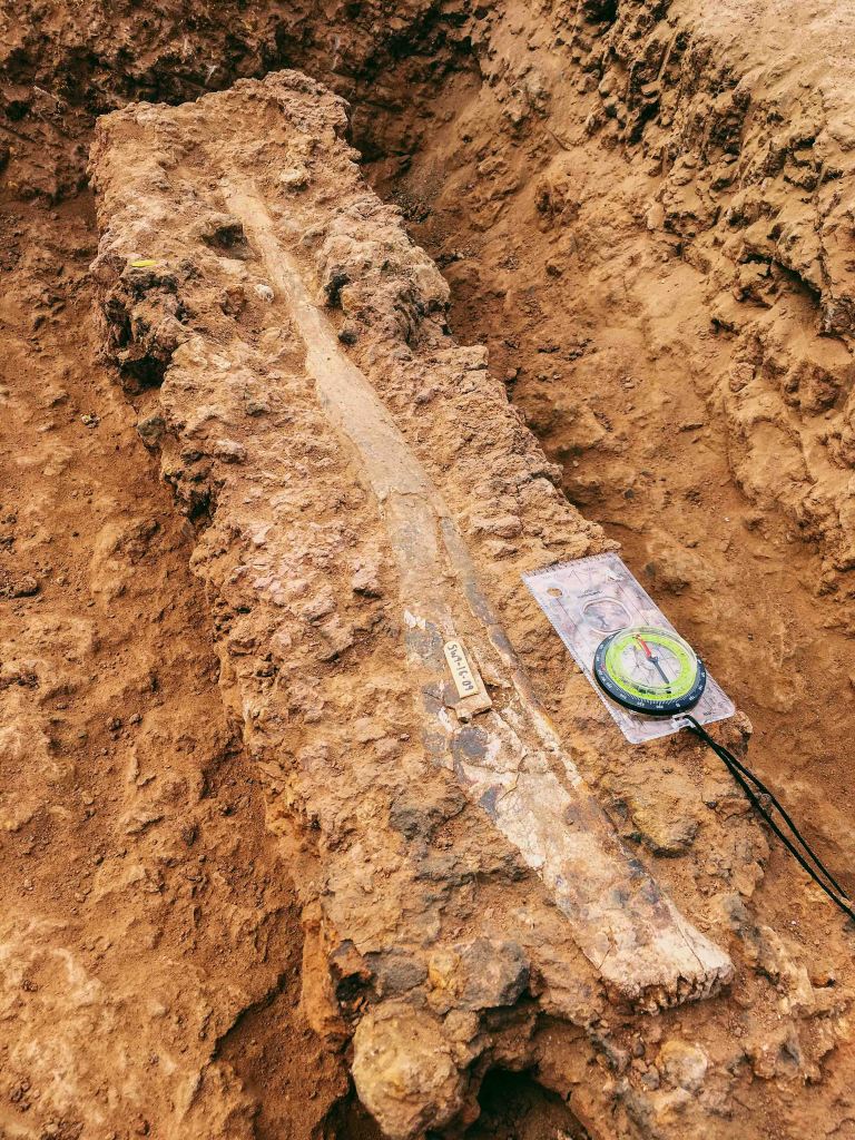 Once the position of the bone was established, we trenched around the specimen to create a pedestal so it could be isolated, with its surrounding sediment, from the rest of the dig site. The bone was then recorded and photographed in situ (the original place of deposition). We also place a temporary paddle pop stick [Sketchfab 6, 7)] with an identifying field number on the bone so it can be plotted in 3-D using a process called photogrammetry.