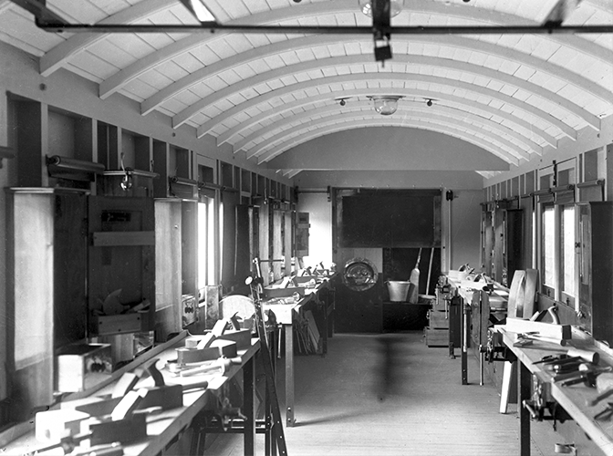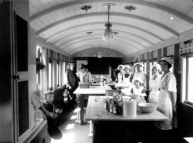 A classroom on wheels, the interior of the domestic sciences carriage. Courtesy of Keith MacDonald.