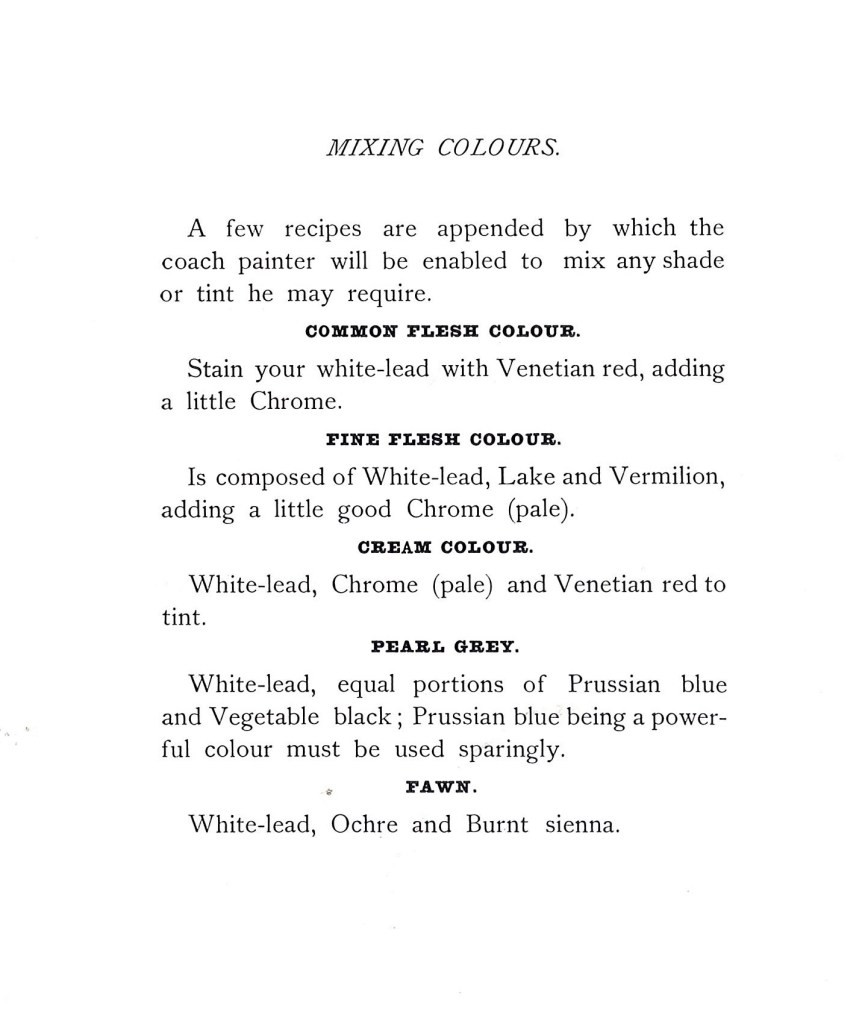 Henry J Drane, 1896 The Coach Painter’s Handbook and Guide, London. Reproduced in Harness, Vehicles, Timber and Coach-Painting, Dene Bindery, Liverpool NSW 1980.