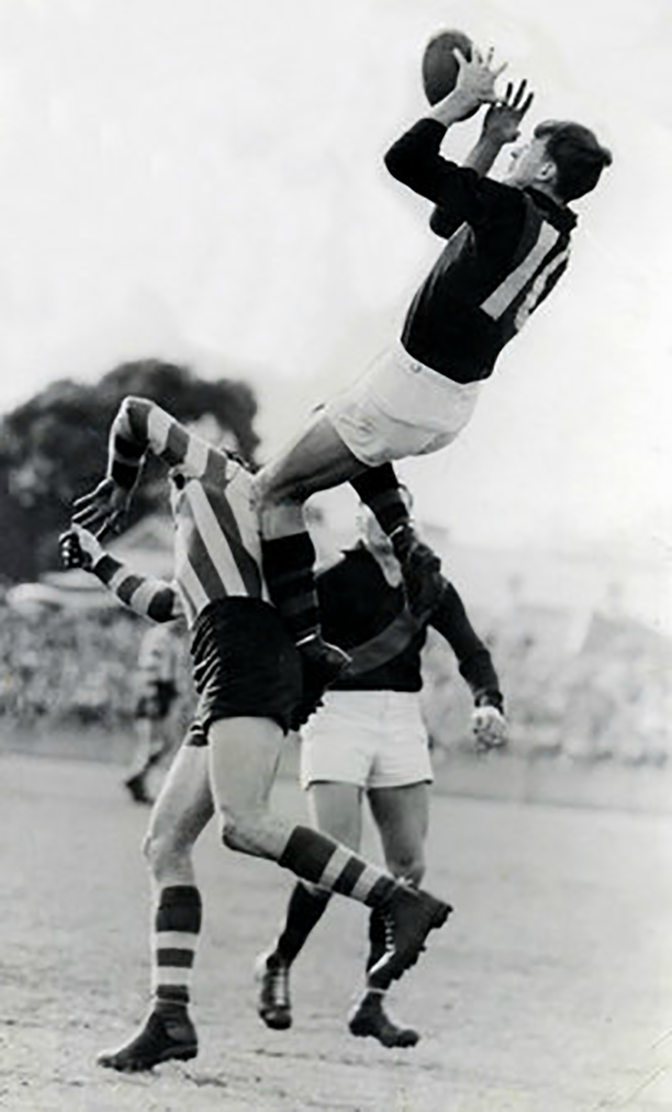 Of the previous ten carnivals, Victoria had won eight and had retained the title continuously since 1924 (South Australia won in 1911 and Western Australia in 1921 when the carnival was hosted in Perth). The 1950 event was no different and the Victorian Football League side dominated and easily won every game they played in Brisbane. For those lucky enough to attend the matches, they were able witness the finest footballers from all across the nation, and there were none finer than the VFL’s spearhead full-forward, John Coleman.