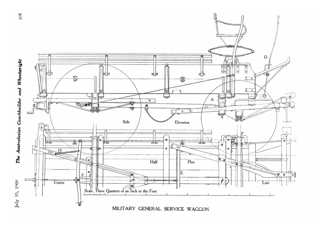 Similar comments were expressed by local coachbuilders in the Australasian Coachbuilder and Wheelwright trade journal it published plans for the approved British Mark X wagon in July 1909.