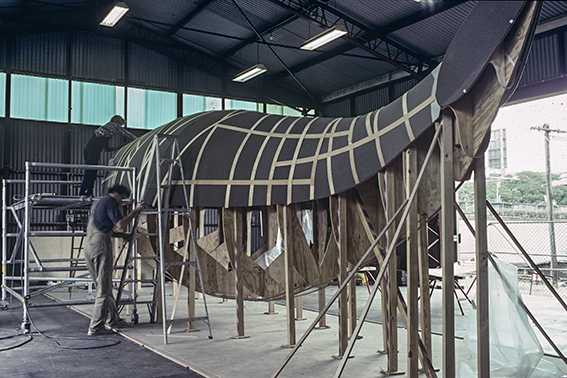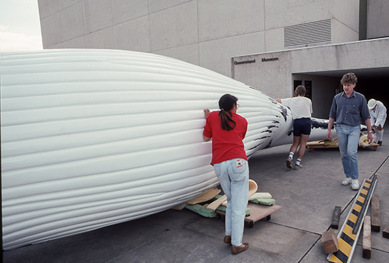 The 1980s saw the creative build of the pod as museum employees Todd Knight, Terry Tebble, Karen Mickan and Jan Williams chipped away at the spectacular showpiece, from the sheds behind the Old Museum, at the RNA showgrounds in Bowen Hills.