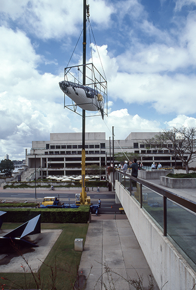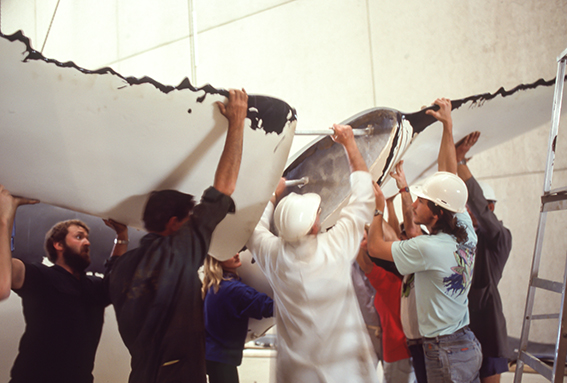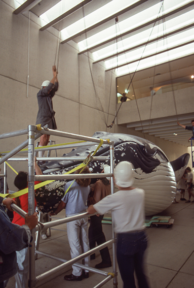 Craned to the top deck for assembly, the whales were delicately placed in the breezeway, only just achieving clearance from the roof.