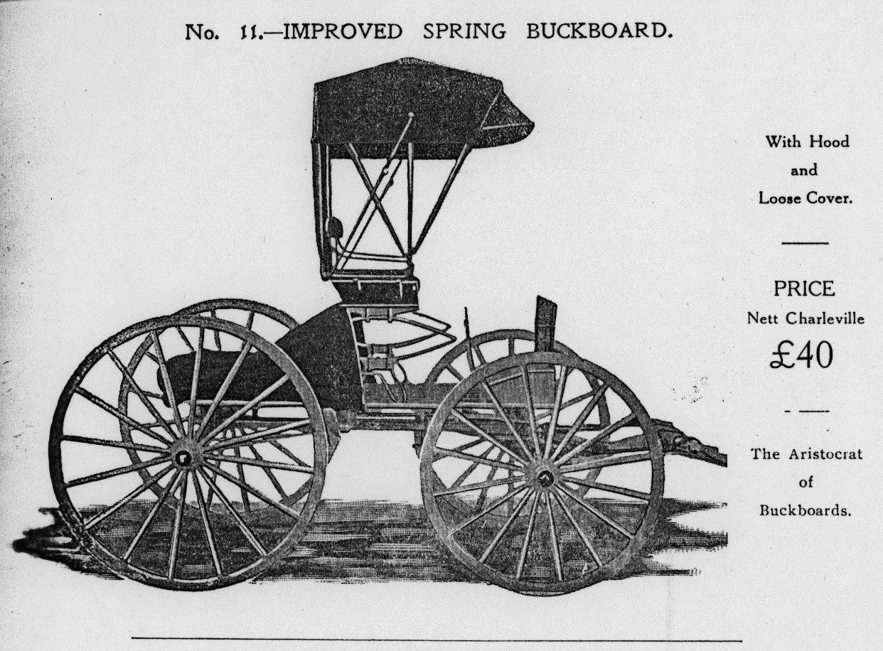 Well known Sydney coachbuilder WT Angus was advertising new and second-hand buckboards by 1877 (Sydney Morning Herald 4 Sept 1877, p3). They could not have been too common as the Sydney Mail and NSW Advertiser was still explaining what constituted a ‘buck-board’ in 1881 (12 March, p416), but within a year or two imported American buckboards were widely advertised. £20- would buy an imported buckboard from coachbuilders such as Rutherford Brothers in Rockhampton (Morning Bulletin 4 Aug 1884, p1) or Cope & Newman of Boggo Road Brisbane. (Queenslander 5 May 1888, p714) Local coachbuilders were happy to import buckboards rather than try to compete with the price.