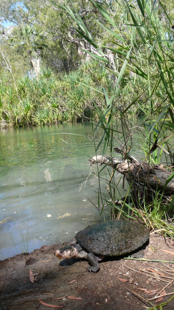 The freshwater turtle, Elseya oneiros, commonly known as the Gulf Snapping Turtle, lives in deep water pools in the Nicholson and Gregory Rivers that flow into the Gulf of Carpentaria.