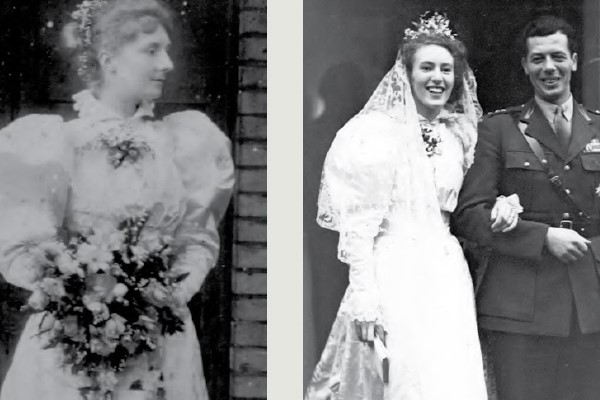 A dress that lived through three generations of family weddings. Henrietta Sarah Tinsley was the first family member to wear the dress when she married William Houlding in London, 1893. William was the son of John Houlding, owner of Houlding Brewery and founder of the Liverpool Football Club. 54 years later Henrietta’s granddaughter wore the dress at her wedding in 1947. This began a family tradition of wearing the dress to honour a family member. On the occasion of Lavinia’s wedding, she wore the dress to honour her grandmother. Lavinia’s daughter continued the tribute by incorporating offcuts from the dress into her own wedding gown.