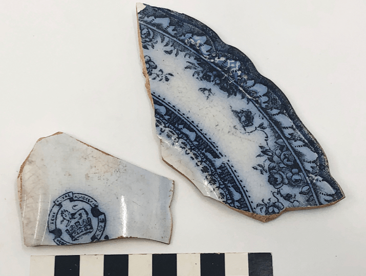 Over the past couple of weeks, I have worked at Queensland Museum as a University of Queensland intern, processing finds from a recent excavation in Ravenswood, a historic goldmining town in north Queensland. Amongst these finds are an abundance of, usually fragmented and broken, ceramic and pottery pieces. As some of these pieces can be exceptionally ambiguous, backstamps are one of the ways archaeologists can explore where and when the artefact may have been manufactured, and what it might have been used for. Backstamps are the printed motifs on the undersides of plates, saucers and teacups and are prized by archaeologists for the specific information they often contain. Although an exciting find in the moment, backstamps, or what remains of them, often require some research and investigative work to reveal their meaning