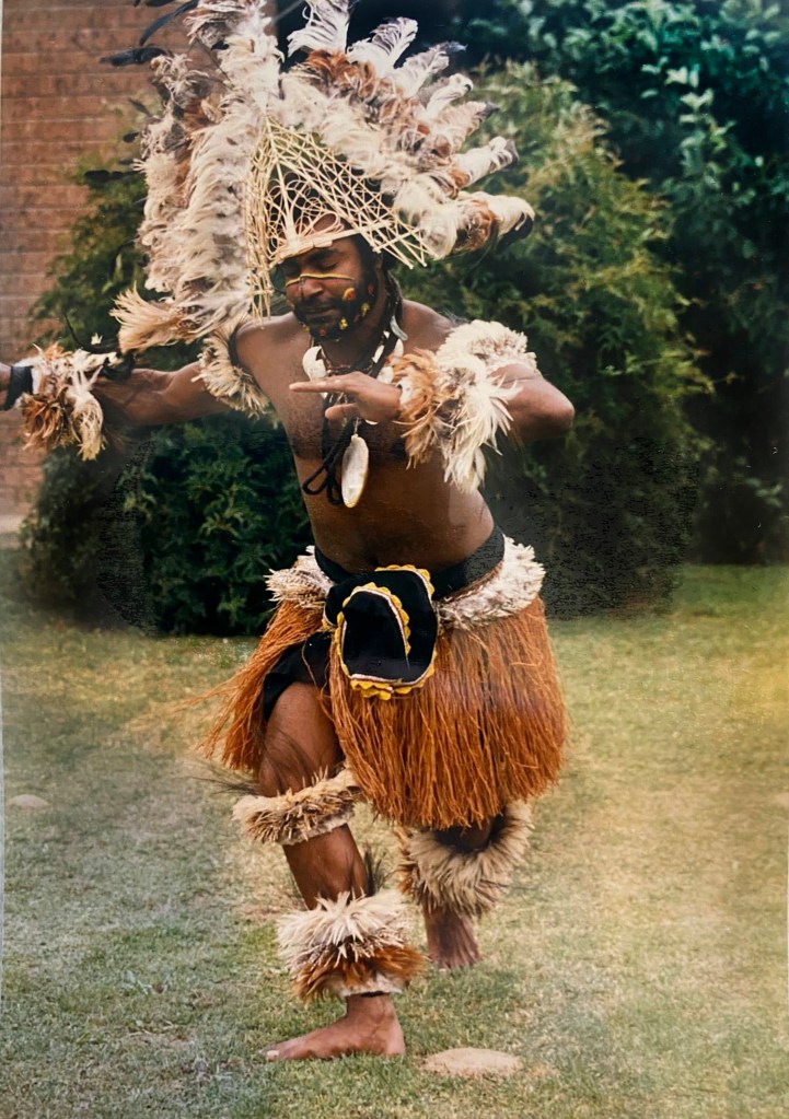 Walter then used his dhibal to perform ceremonial dance and describes this as a game changing event, as it was the first time since the arrival of Christian missionaries on Saibai Island that traditional dance was performed in public. Prior to this, the missionaries banned the expression of traditional culture including ceremonial dance in public spaces. Walter’s dance that he performed for his engagement ceremony in front of his father and Ait Koedal Elders was a significant event marking an historical moment of pride and joy for his community.