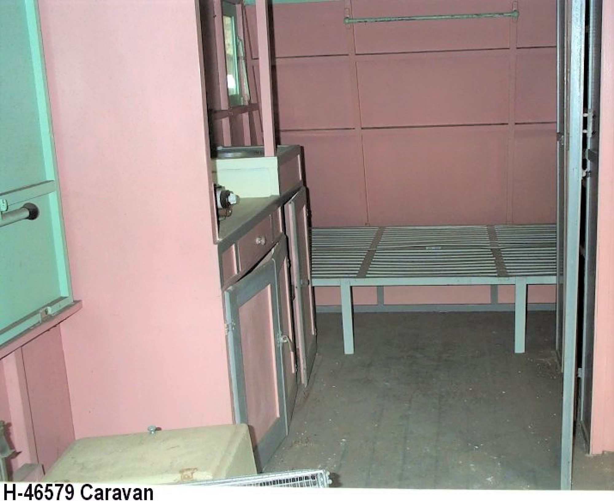 The early caravans were made of plywood (‘bondwood’) with pine frames. They were Spartan by modern standards but generally did have cupboards; a sink with a hand operated pump to a water tank; a small ‘metho’ stove; possibly an ice chest; and a folding table that became a bed at night. Lighting could be from a ‘tilly’ hurricane lamp or a battery light. The Macphersons’ van was well appointed with 240-volt power outlet and lights, but ‘powered sites’ at camping grounds were rare in those days so the kerosene lamps were always taken as a backup. The mushroom pink and light green décor was very fashionable in the late 1940s.