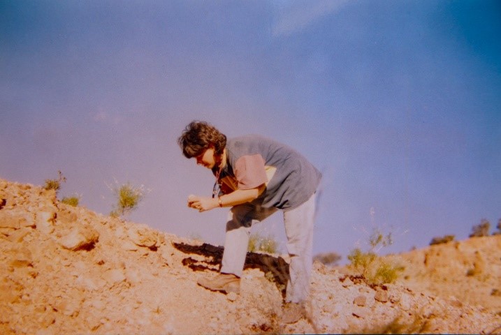 Joanne Wilkinson surveying the geology of the Eromanga region on Plevna Downs, 1998