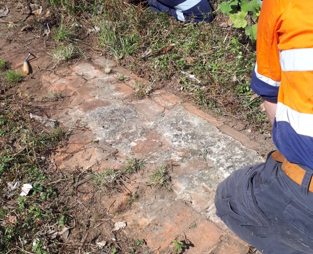 Imagine the scene… A fenced cattle paddock, some old concrete foundations, and a lovely tropical garden arrayed along a small quiet country road. One day two port-a-loos arrive, the next a bus and two 4WDs arrive and 15 archaeologists, anthropologists, researchers and students pour out and start unpacking shovels and sieves and toolboxes. This day has been four years in the making, through grant applications, community discussions, planning and a pandemic. Finally we are in the field to start our first archaeological field season, begin mapping landscapes and discussing objects as part of the Archaeology, Collections and Australian South Sea Islander Lived Identities research project. We were nearly brought undone again by the recent Covid-19 outbreak in Sydney, but an all-Queensland team from Queensland Museum and the University of Queensland began work today at the Homebush Mill site south-west of Mackay.