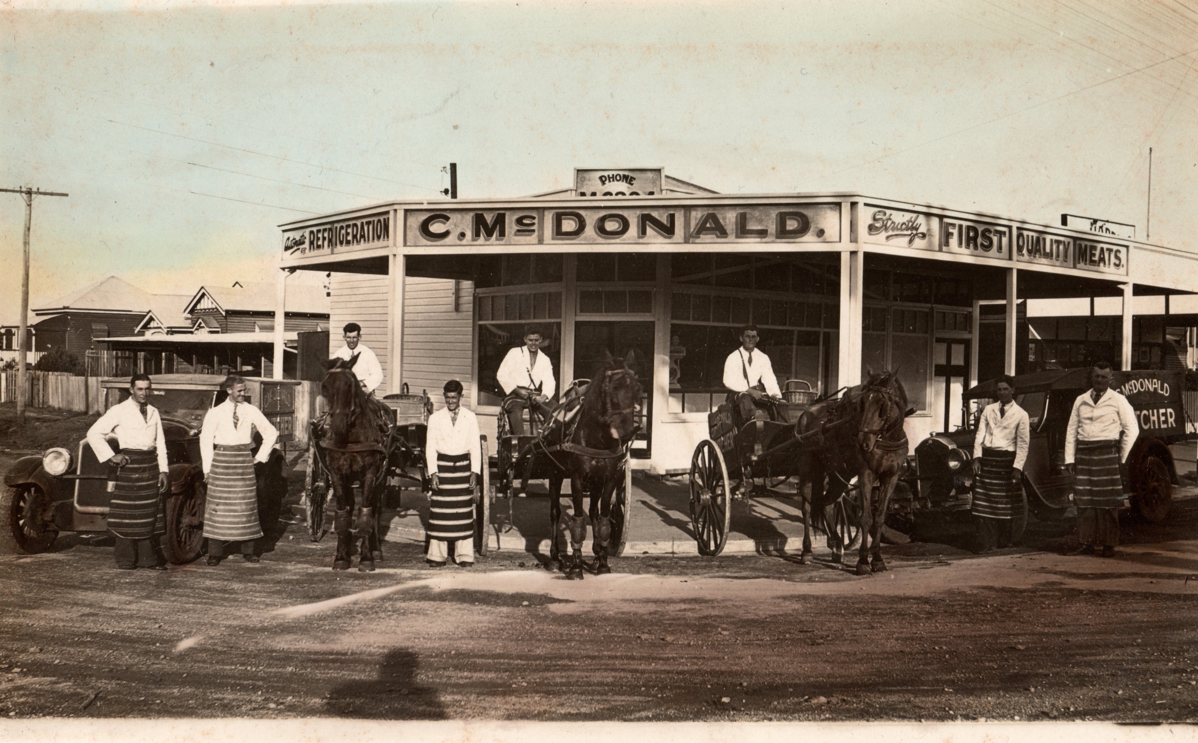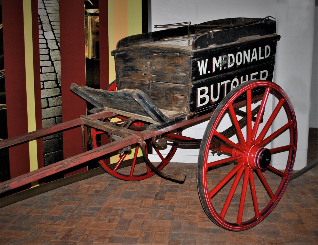 Very few townspeople owned a horse-drawn buggy or sulky, so that was rarely an option. Carriages were expensive to buy, and horses needed big yards and cost money to feed. Most shoppers simply walked home, carrying their goods in bags and baskets. Small family owned ‘corner shops’ were found throughout towns and suburbs. Shops were conveniently located at street intersections for easy access from any direction. However, people can only carry so many items no matter how close the shop.