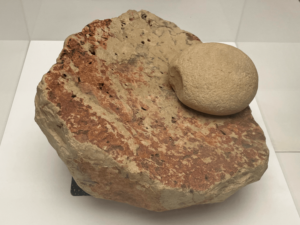 Why’s it special? It’s one of the oldest forms of evidence of continuous human occupation of Australia. The larger stone is called a Millstone and forms the lower platform for the smaller stone, called a Muller, to work against. Grindstones can be used for grinding seeds into flour for bread making, cracking bones for the extraction of marrow and for cracking nuts. They were also used for grinding up pigments, such as ochres.