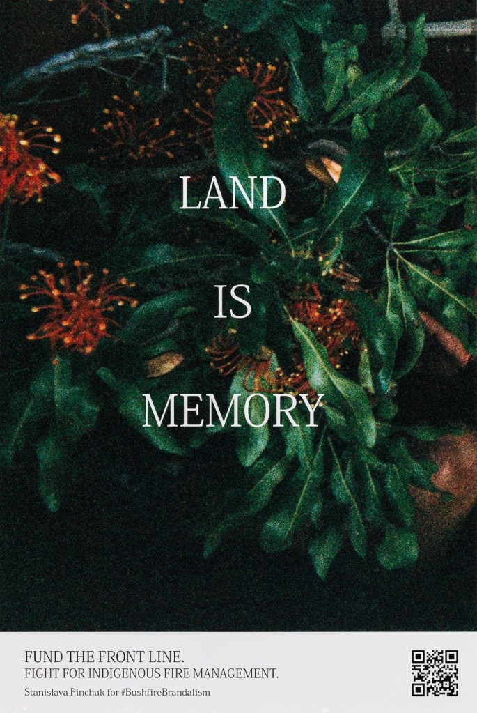 Artists Lotte Alexis Smith and Stanislava Pinchuk highlighted bush regeneration and the need to centre Indigenous voices in bushfire preparation, response, and recovery. Indigenous perspectives have traditionally been erased from conversations about managing Country in favour of Western views of fire and land management, despite the past successes of cultural burning practices and fuel management. (5)