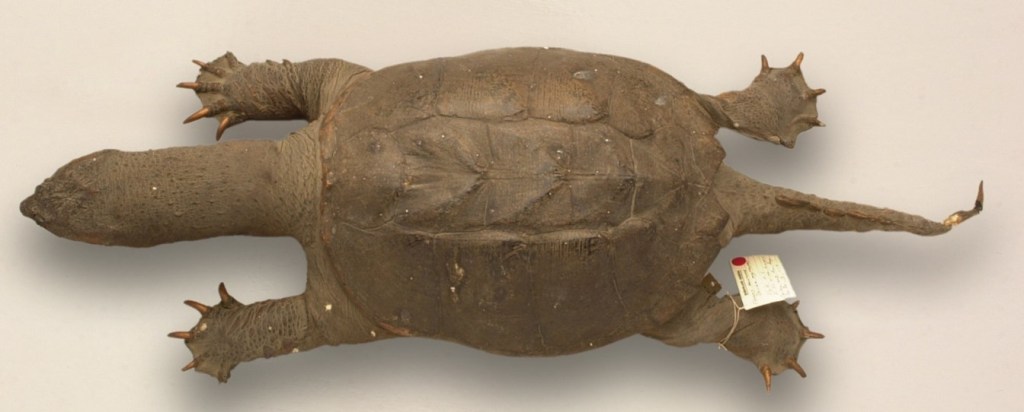 This specimen was said to have been collected from the Fly River in New Guinea but was later identified as a snapping turtle from North America.