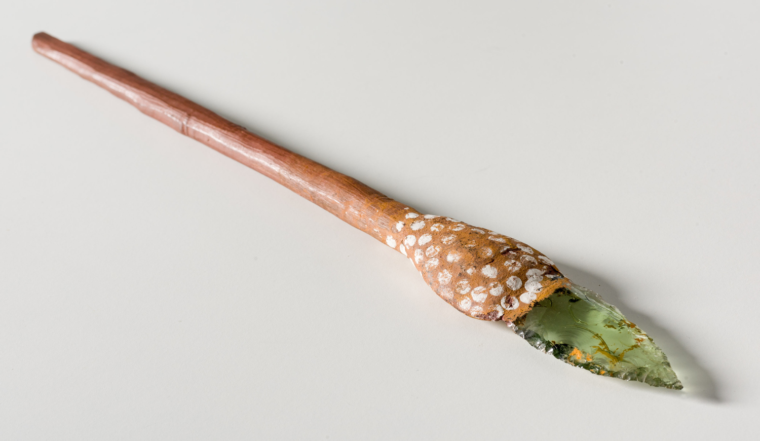 Images L-R: Spear point secured with resin. This point has been made from glass (Kimberley region, WA). Photo: Peter Waddington, QM.
