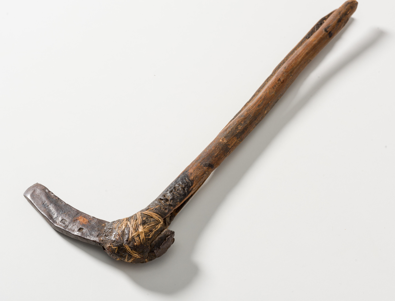 Iron axe head secured with resin. In this case a sharpened horseshoe has been used as the axe head (Walsh River, QLD). Photo: Peter Waddington, QM.