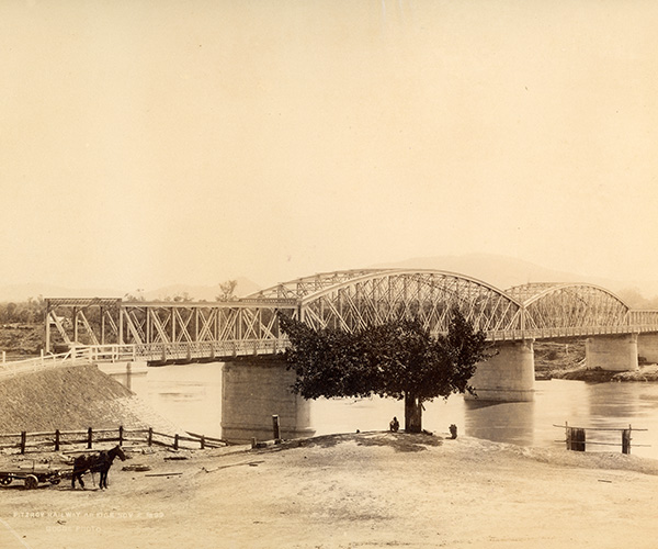 The Rockhampton Junction Railway, connecting South and North Rockhampton stations, was the first double line in Queensland outside the Brisbane-Ipswich metropolitan region. Chief Engineer, HC Stanley, believed future livestock and goods traffic would justify the expense. With the construction of the Daradgee Bridge in 1924 the North Coast Line was complete, allowing the Sunlander and other services to travel from Brisbane to Cairns. The Alexandra Bridge remained a double line until 1975, when the eastern set of rails were removed. Photographer: Henry Goode. Queensland Museum Network Collection & Keith McDonald Collection/ Queensland Museum Network Collection