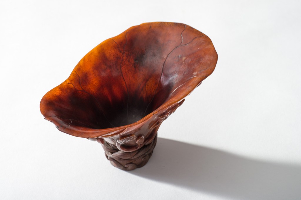 Rhino horn libation cups were considered to have aphrodisiac properties and the ability to detect poison, which could be detected when the cup changed colour.