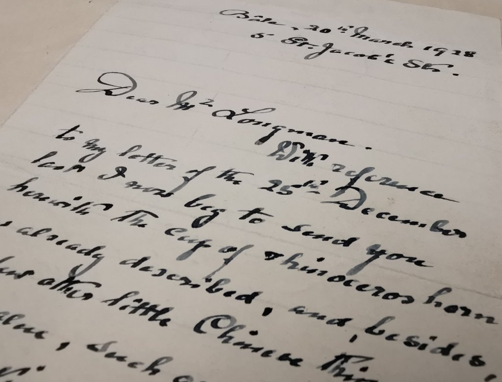 Heber engaged the services of de Rautenfeld, requesting him to procure objects and specimens from China, to add to the museum’s collections. One object sent to the museum as part of what Heber referred to as, the ‘de Rautenfeld Series’, was a carved, rhinoceros horn libation cup, from China.