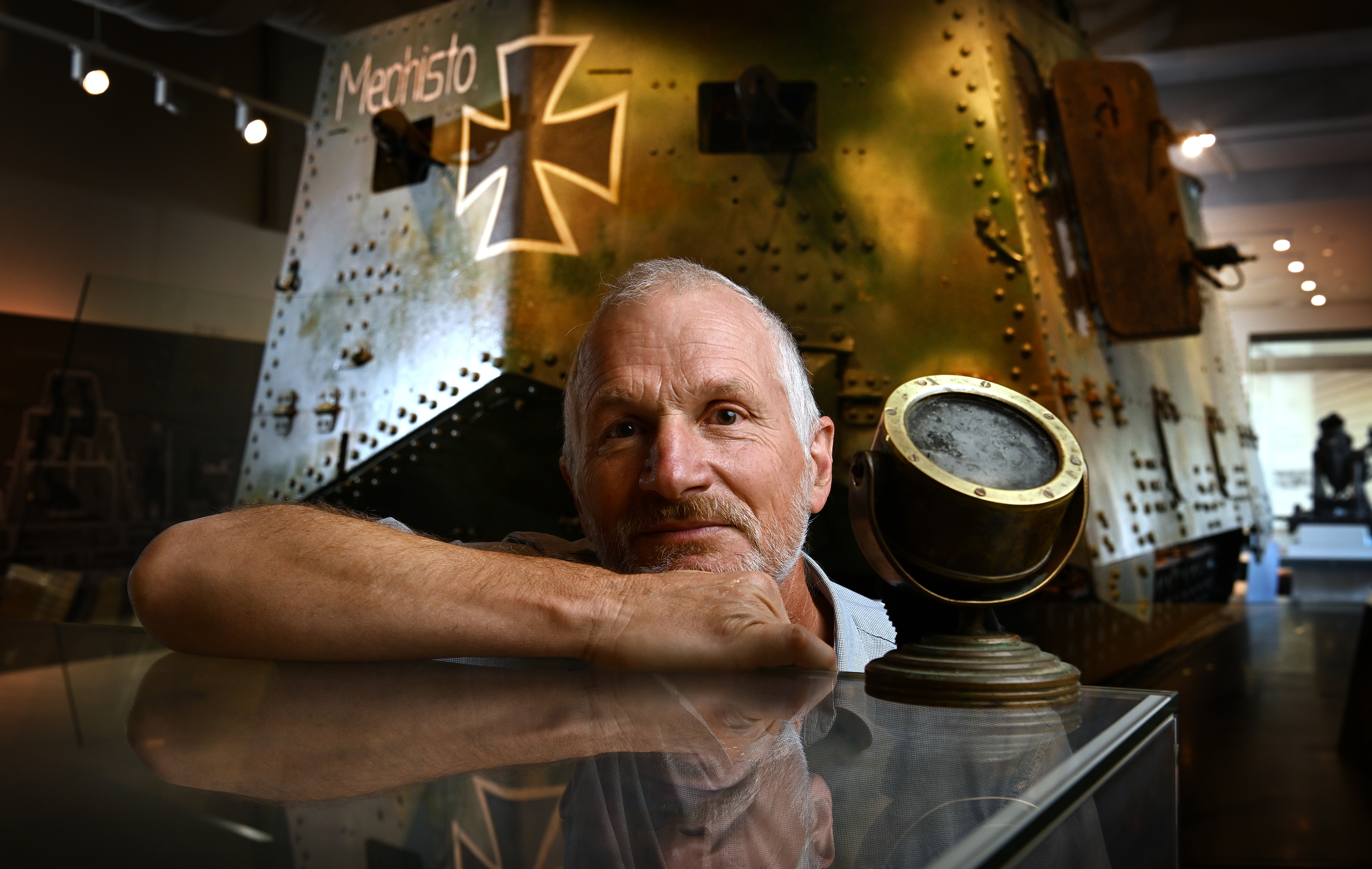 The answer is that the compass is currently in Queensland Museum’s Conservation lab where it will undergo cleaning and conservation. It is hoped that once the fluid is drained and it is taken apart (successfully this time!), we will be able to see a maker’s mark and confirm its provenance as either a Bamberg or Plath magnetic dampened compass. Sadly, we cannot test to see if the compass fits, as one of the missing parts of Mephisto is the roof panel with the compass dome. Eventually, the compass will go on display in the Anzac Legacy Gallery alongside Mephisto.