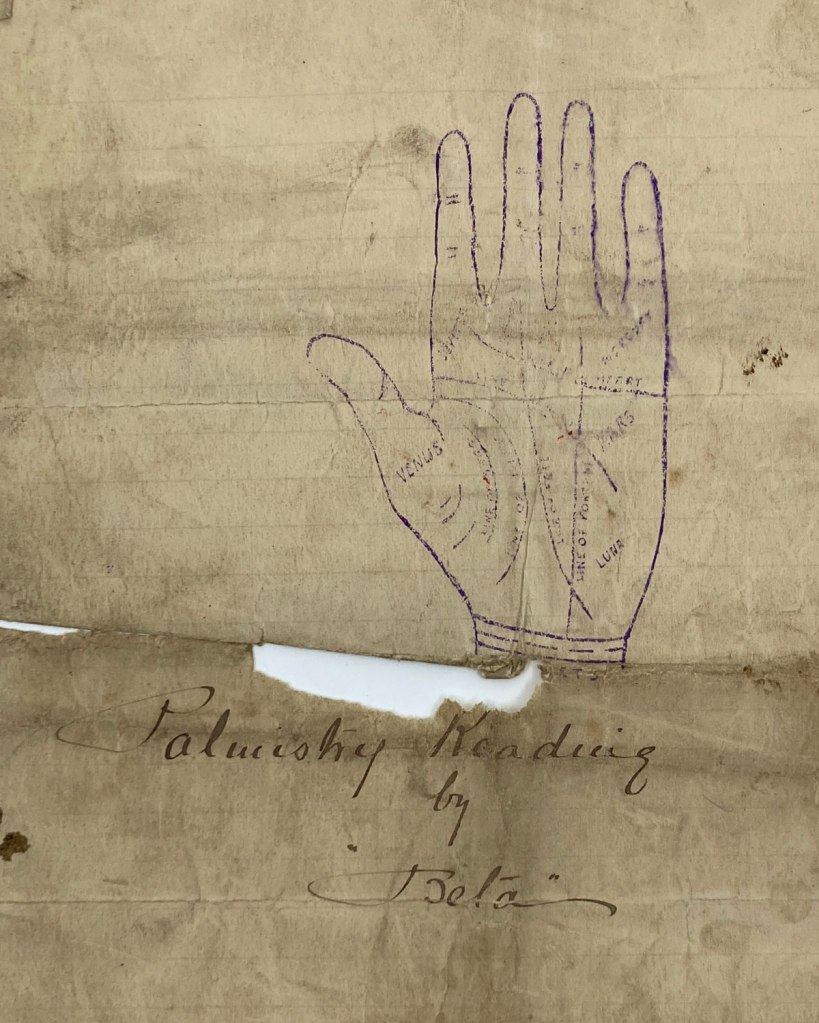 A woman living in Mt Morgan in November 1900 believed enough to pay for a palm reading. The well-worn but carefully kept document hints at how its owner valued these six pieces of paper.