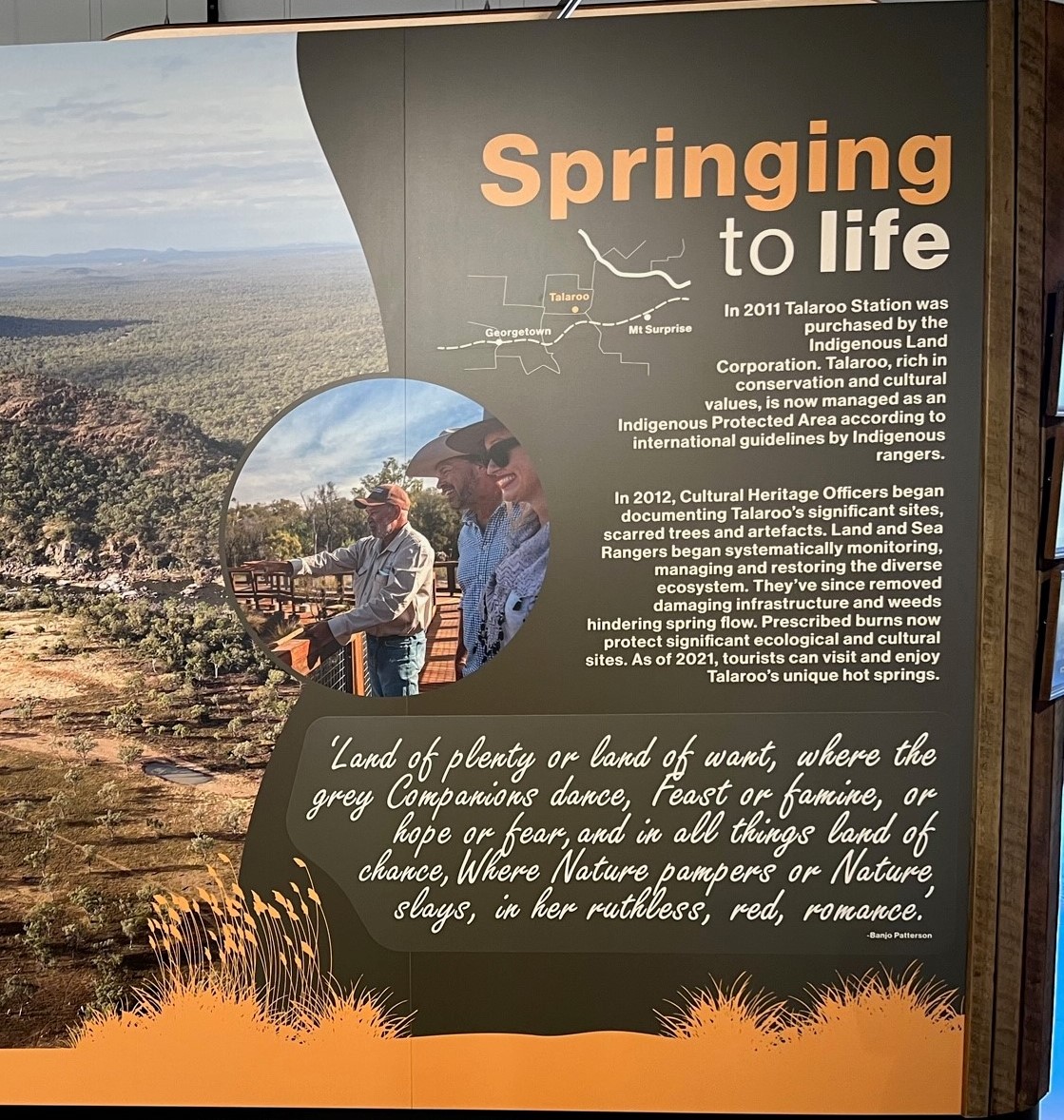 First off, let’s visit Georgetown, where the new Unearth Etheridge interpretation displays at the TerrEstrial Centre allow visitors to explore the region’s diverse cultural and natural history. A 3D interactive relief map tells three landscape stories – origins, exploration and expansion. Ewamian culture is acknowledged and featured throughout the displays, including the Corporation’s work at Talaroo Station where rangers have been documenting cultural sites and sharing culture with locals and tourist. A video about the way Elders and community contribute to reconciliation and shared understanding features in their theatrette, and entices visitors to visit the hot springs and find out more.