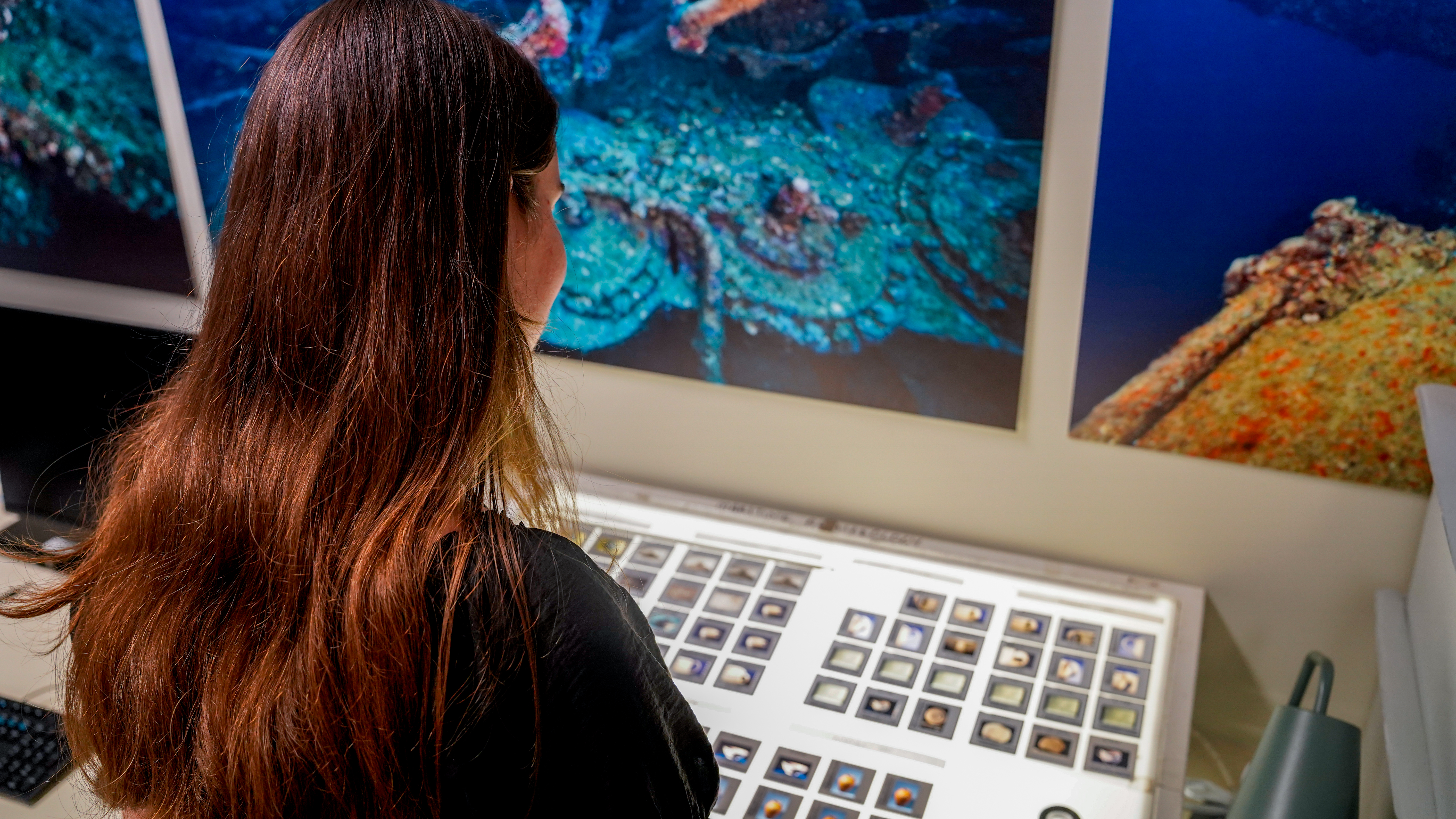In the late afternoon, we worked together in the QMT Cultures & Histories Archive on the HMS Pandora Legacy Project which aims to digitize the excavation records of the Pandora collection and make it universally accessible for the public to view and research. We sorted images that the excavation team took on their expeditions to the underwater site and filed the physical image slides afterwards. You can read more about the ongoing project here.