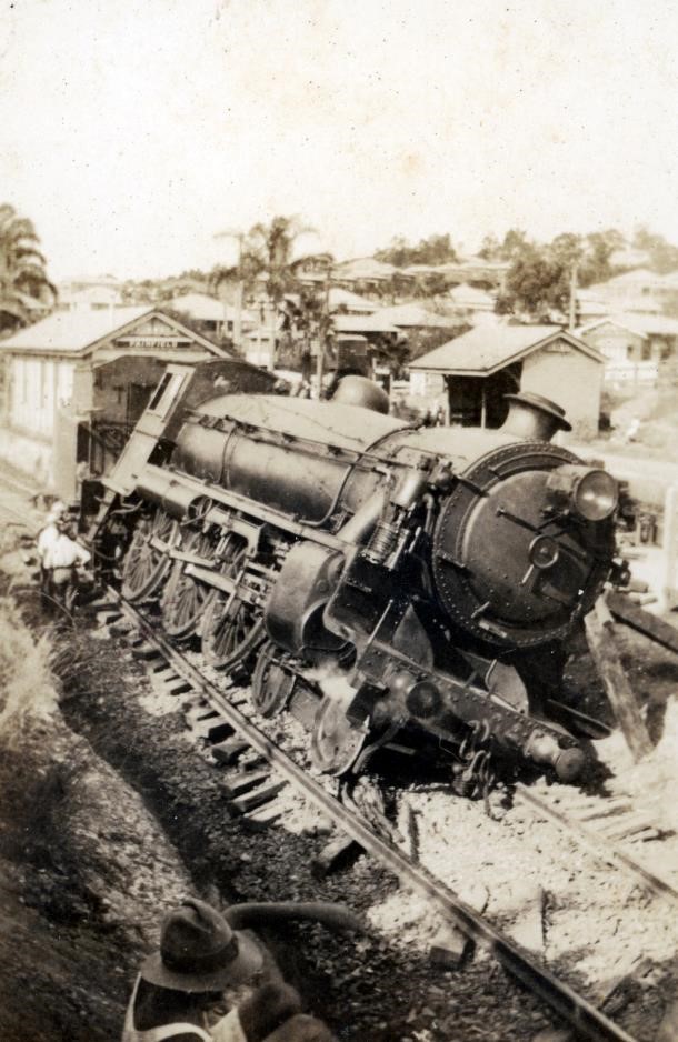 ‘Coming north of the Border through Yeronga station where the standard and narrow gauge tracks are closely parallel we would with our 5’ 9” driving wheels rapidly overhaul the south side suburbans and from our lofty perch on the fireman’s side of the ‘Pig’ look down on the Queensland crews with a certain amount of disdain.’