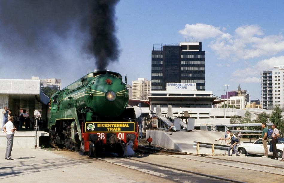 In 1978, the two sides of Brisbane’s suburban network were finally connected when the Merivale Bridge was opened. Following the announcement of Expo 88 in late 1983 and subsequent redevelopment plans, the interstate station was moved to Roma Street and all goods work was transferred to Acacia Ridge and Clapham. The station site became World Expo Park in 1988. After the park’s closure in 1989, the Brisbane Convention and Exhibition Centre was built on the old interstate station site, opening in 1995.