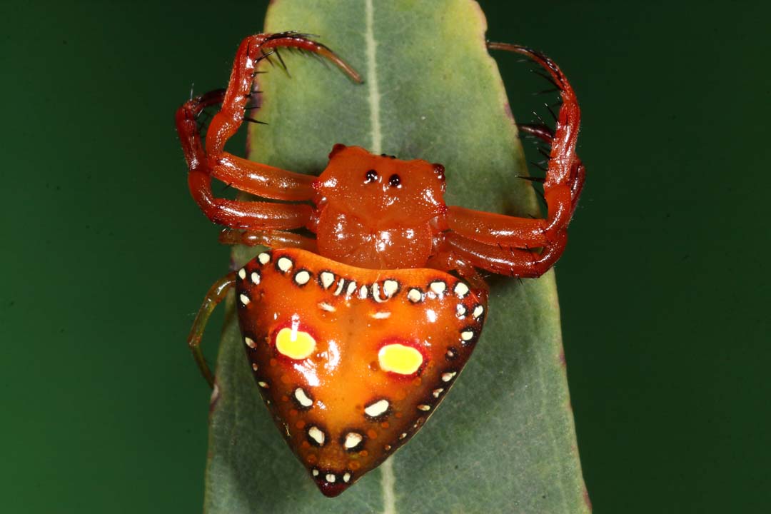 Images L-R: Garden Jumping Spider, Opisthoncus quadratarius, female. © Michael Rix; Two-spined Spider, Poecilopachys australasia, female. © Greg Anderson; Davies’ Ant Spider, Subasteron daviesae, male. © Greg Anderson.