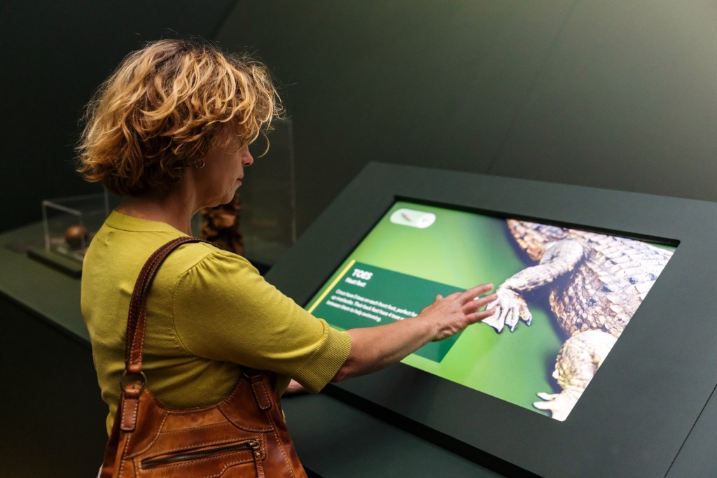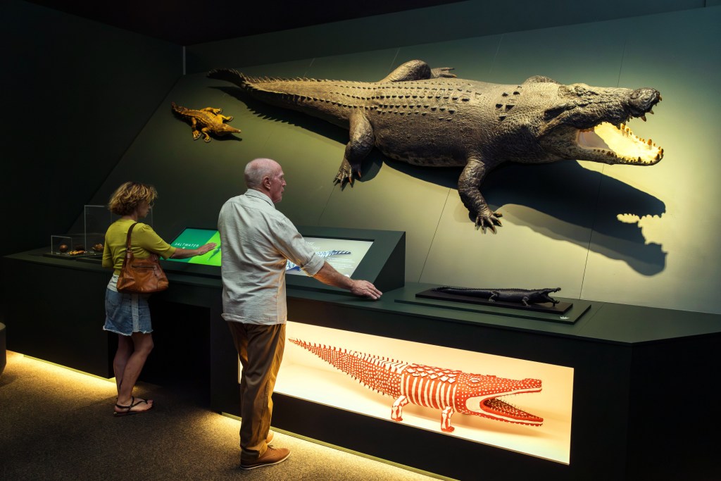 Image, left: Explore the interactive exhibits in Croc! to discover more about the differences between freshwater and saltwater crocodiles.
